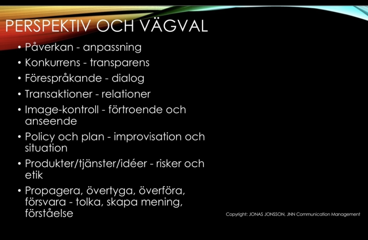 Identifiering och hantering av prioriterade frågor och påverkande problem genom Issues Management innebär samtidigt att kännedom om olika publikers potential och ageranden kan skapa ett ökat handlingsutrymme. Men problem- och riskdefinitioner kan snabbt utmanas av händelsestyrda nyheter, präglade av dramatik, skuld eller ansvar i en tid när desinformation utmanar demokratin och undergräver förtroendet för institutioner, näringsliv och vetenskap.
